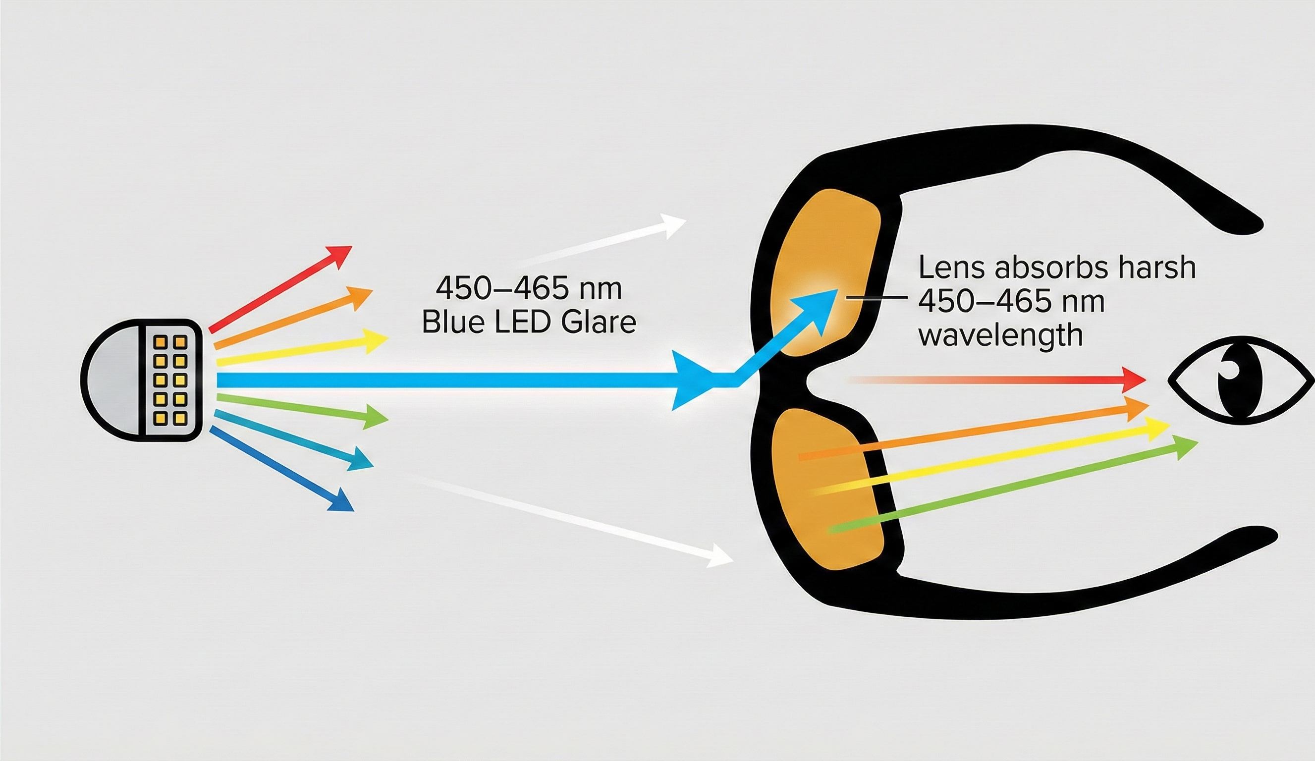 NightClear utilizes NASA-inspired "GlareCut" technology designed to specifically eliminate the most blinding LED frequencies - which Gary found to be between 400 to 600 nanometers - while still allowing drivers all the natural streetlight they need for perfect visibility.